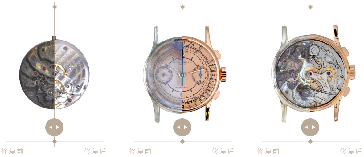我們的修復工匠可以復原手錶原有的外觀。無論是珍罕的老款或是受損的現代錶款,我們都予以充分的尊重。我們不僅修復手錶,也還原壹段故事。大工坊的專業修復工匠擁有博大精深的技術和專業知識,可以將老舊或損壞的錶款恢復原貌。